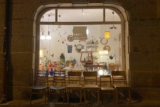 Der Kinderschreibtisch stammt von der Firma Adalbert Stempfle Bürobedarf Ansbach, wohl aus den 50er-Jahren. Das Material ist Eiche und Buche, am Sockel vorne dunkelgrünes Linoleum. Das Seitenteil links ist mit einem leichtgängigen Rollladen zu verschließen (ein Schlüssel vorhanden), innen befinden sich sechs herausziehbare Schübe, drei davon mit verschiedenen Einteilungen (massive Buche mit Holzverbindungen). Höhe 69,5cm, Breite 90cm, Tiefe 50cm, Gebrauchsspuren; die Platte wurde transparent lackiert.