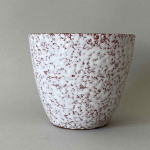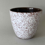 Blumenübertopf aus den 50er-/60er-Jahren aus rotbrauner Keramik mit weißer, lavaartiger Glasur. Höhe 12,5cm, Durchmesser 16cm, guter Zustand. Preis: EUR 28,00
